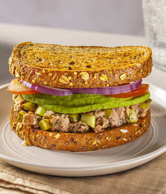 Give your tuna sandwich a fresh, modern upgrade with this vibrant take on a classic. Creamy avocado and zesty Italian dressing come together in a mayo-free tuna salad, served on Stonemill® Sourdough Multigrain Rye for a bold, delicious bite.